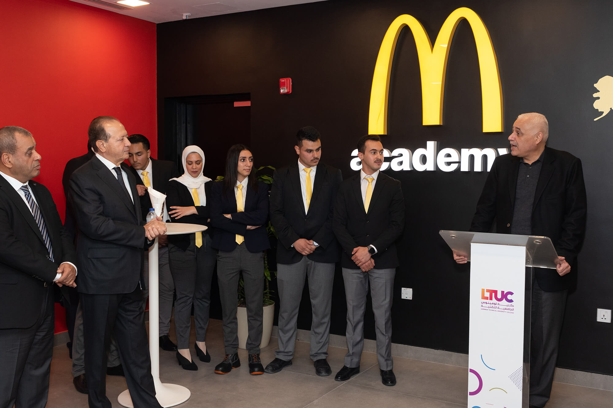 افتتح أمين عام وزارة العمل عطوفة السيد فاروق الحديدي، مندوبًا عن وزير الصناعة والتجارة والتموين وزير العمل، ماكدونالدز أكاديمي والتي هي بالشراكة مع كلية لومينوس الجامعية التقنية (LTUC) يوم الإثنين الموافق 5/12/2022 وبحضور السيد أحمد عرموش، رئيس مجلس إدارة شركة عرموش للاستثمارات السياحية ( ماكدونالدز الأردن)، والدكتور أيمن مقابلة عميد كلية لومينوس الجامعية التقنية، والعديد من الشركاء الاستراتيجيين.